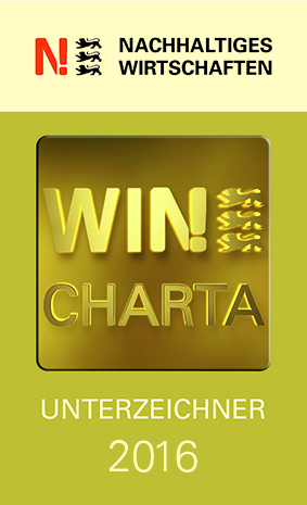 Die WIN-Charta des Landes Baden-Württemberg ist bislang bundesweit das einzige Nachhaltigkeitsmanagementsystem speziell für kleine und mittlere Unternehmen (KMU). Diese freiwillige Selbstverpflichtung zielt darauf ab, den Nachhaltigkeitsgedanken in allen Branchen der baden-württembergischen Wirtschaft zu verbreiten und zu verankern. Mit der Unterzeichnung der WIN-Charta haben wir ein klares Bekenntnis zu unserer ökonomischen, ökologischen und sozialen Verantwortung abgegeben.